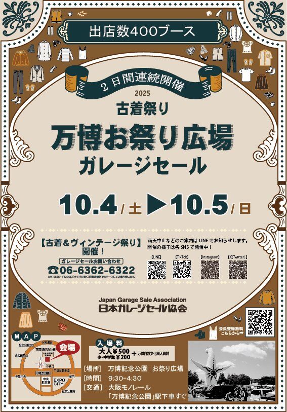 万博お祭り広場ガレージセール2025|10月4日(土)〜10月5日(日)古着祭り&ヴィンテージアイテムが大集合!