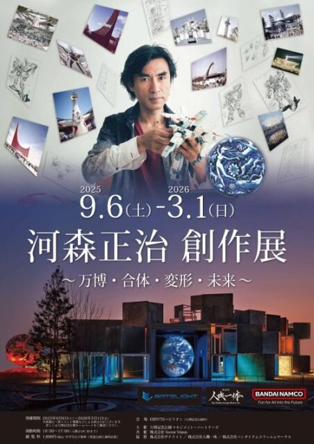 1970年日本万国博覧会の記憶を今に伝えるEXPO’70パビリオンにて開催される企画展「河森正治 創作展 ~万博・合体・変形・未来~」。革新と想像力で世界を魅了し続けるクリエイター・河森正治の創作の軌跡を辿る本展では、貴重な立体展示や設定資料を通じて、代表作から最新プロジェクトまでを一挙に紹介します。1970年大阪万博で河森少年が受けた衝撃と、2025年へと連なる創造の連鎖を、ジオラマや映像演出で体感できる構成となっています。さらに、2025年大阪・関西万博のシグネチャーパビリオン「いのちめぐる冒険」に関連する特別展示も予定されており、世代とジャンルを超えて響く“創造の冒険”を味わえる企画展です。